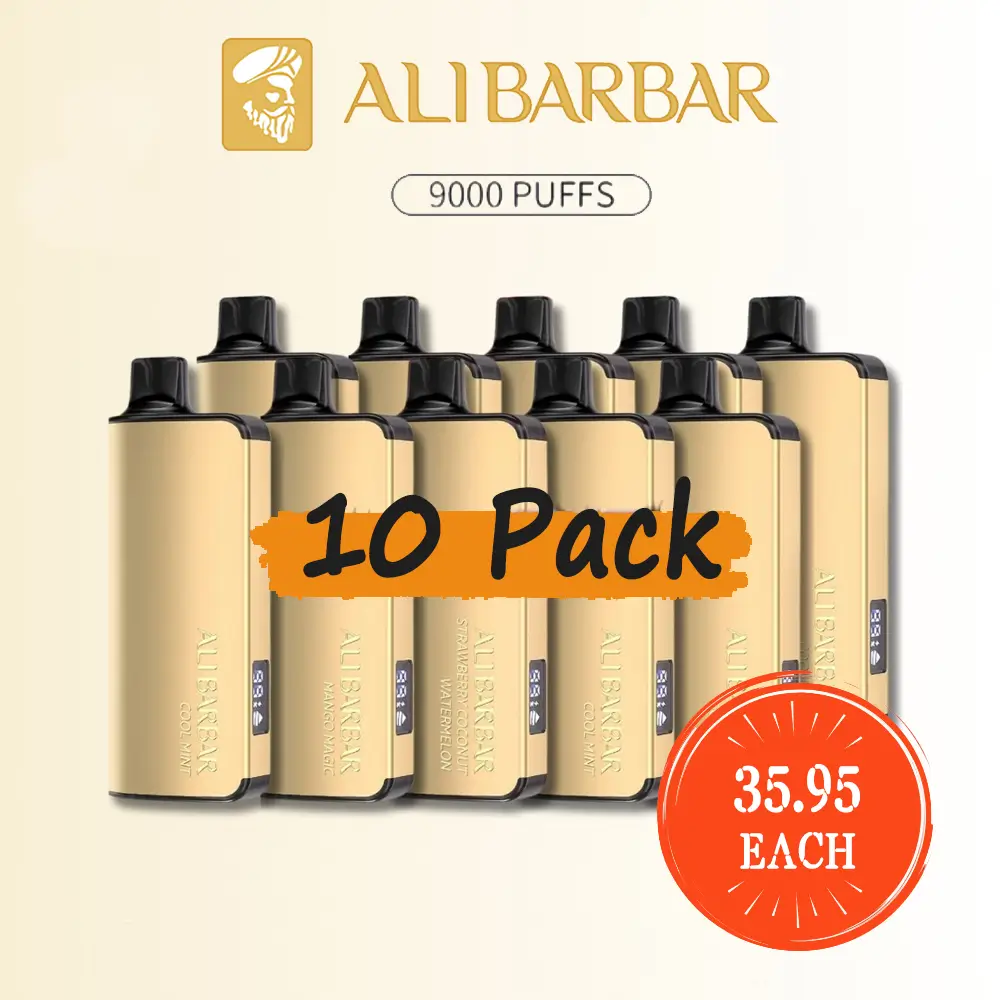 Our ultimate Alibarbar INGOT 9000 10-piece bundle delivers exceptional value – ten premium golden vapes with 9,000 puffs each, perfect for serious enthusiasts and retailers.